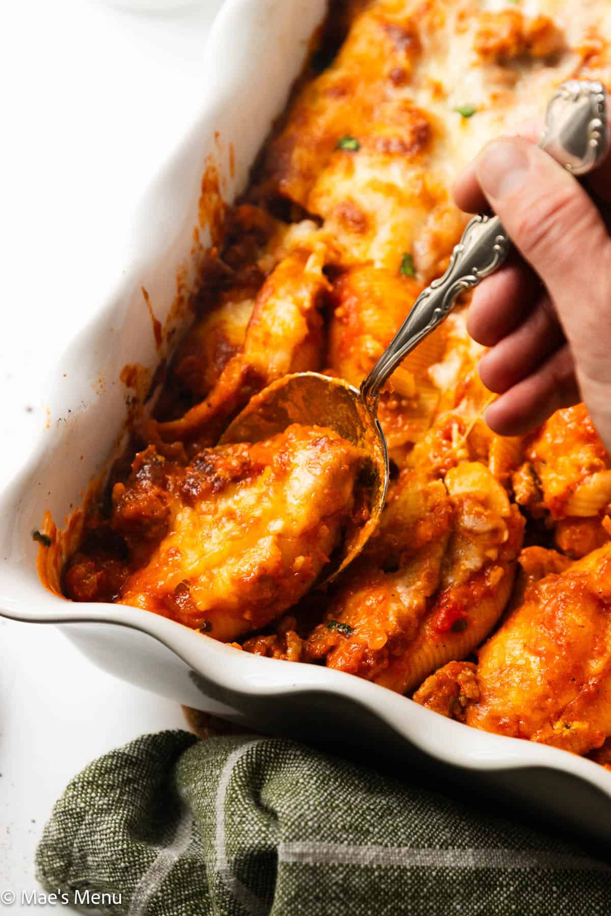 - To assemble ahead of time — Prepare the shells completely through assembly, then cover the baking dish tightly with foil and refrigerate for up to 24 hours. When ready to bake, keep the foil on and add 5 extra minutes to the covered bake time since the dish will be cold.
